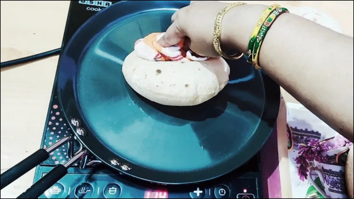 इसके बाद एक मोटे कपड़े या छोटी तैलिया को फोल्ड कर लें और रोटी को अलट-पलट करते हुए दब-दबा कर सेंकें। इस प्रक्रिया से रोटी अच्छी तरह से फूलती है और इंडक्शन पर भी मुलायम बनती है। ध्यान दें कि रोटी को तवे पर ही अच्छी तरह सेंकना जरूरी है, इससे उसका स्वाद और टेक्सचर बेहतरीन रहेगा।