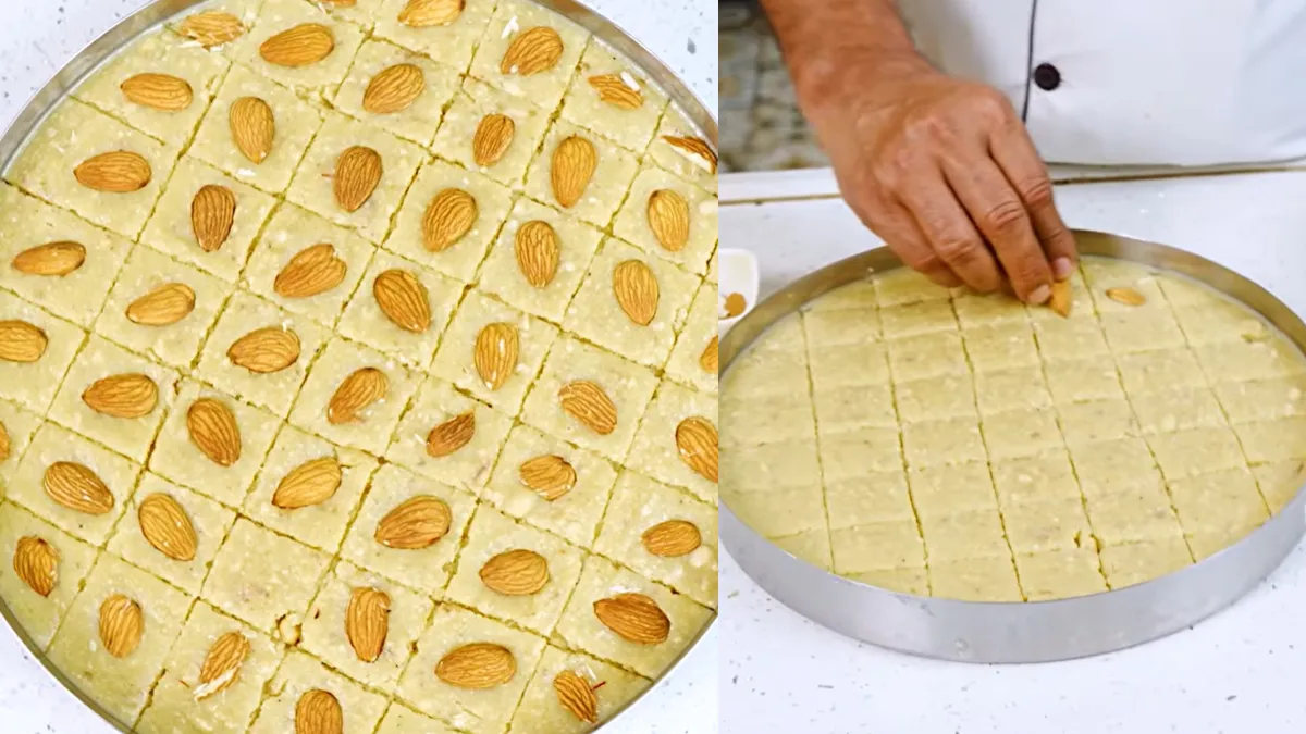 अब एक प्लेट या ट्रे में घी लगाकर मिश्रण को उसमें फैला दें। इसे 5-6 घंटे तक जमने के लिए छोड़ दें। जमने के बाद इसे चाकू से बर्फी के आकार में काट लें और ऊपर से बादाम से सजाकर सर्व करें।