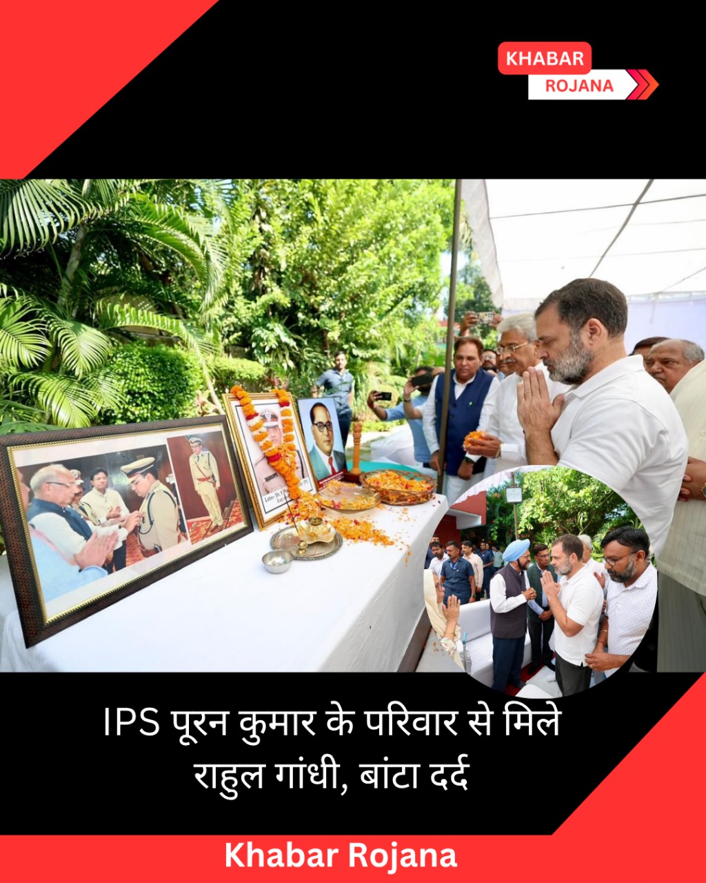 कांग्रेस नेता और लोकसभा में नेता प्रतिपक्ष राहुल गांधी हरियाणा के वरिष्ठ IPS अधिकारी वाई. पूरन कुमार को श्रद्धांजलि देने के लिए चंडीगढ़ पहुंचे। उन्होंने दिवंगत अधिकारी के परिजनों से मुलाकात की। पूरन कुमार ने 7 अक्टूबर को आत्महत्या की थी, और 8 दिन बीत जाने के बाद भी उनका अंतिम संस्कार नहीं हो सका। उनका पार्थिव शरीर चंडीगढ़ PGI में रखा गया है, जिससे परिवार और अधिकारियों में शोक की लहर है।