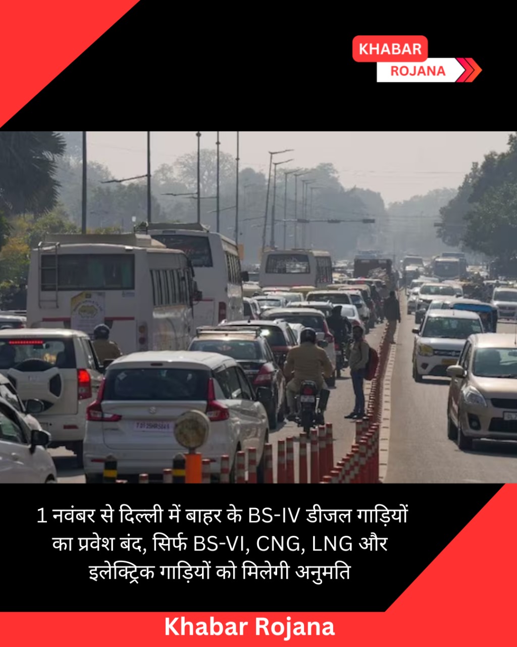 दिल्ली सरकार ने प्रदूषण नियंत्रण के लिए बड़ा कदम उठाया है। 1 नवंबर से राजधानी में बाहर से आने वाली BS-IV डीजल गाड़ियों का प्रवेश पूरी तरह प्रतिबंधित रहेगा। अब केवल BS-VI, CNG, LNG और इलेक्ट्रिक गाड़ियों को ही दिल्ली में आने की अनुमति होगी। सरकार का कहना है कि यह फैसला वायु गुणवत्ता सुधारने और बढ़ते प्रदूषण स्तर को नियंत्रित करने के लिए लिया गया है।