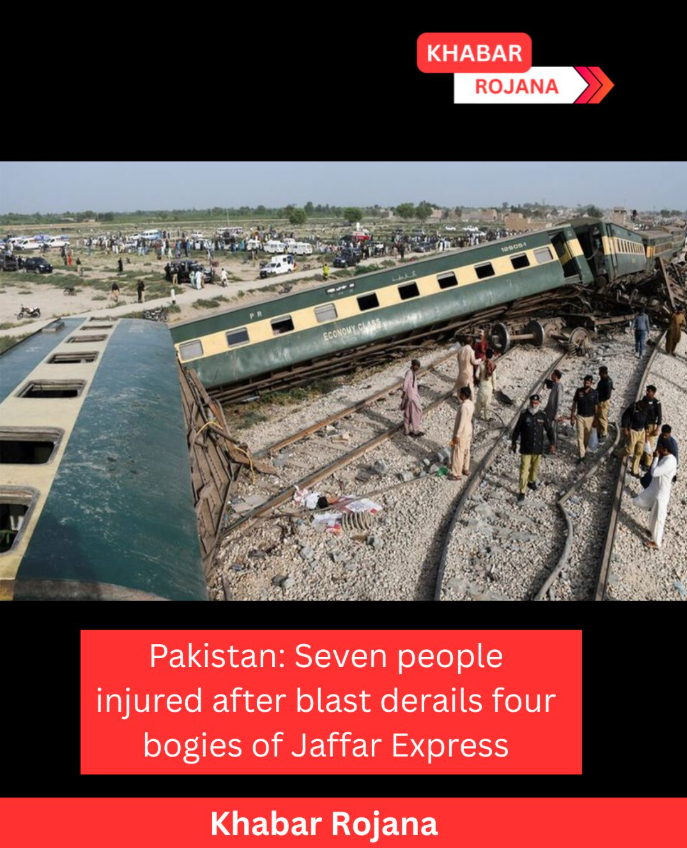 पाकिस्तान में जाफर एक्सप्रेस ट्रेन में हुए एक धमाके से हड़कंप मच गया। विस्फोट इतना तेज था कि ट्रेन की चार बोगियां पटरी से उतर गईं। इस हादसे में कम से कम सात लोग घायल हो गए, जिन्हें नज़दीकी अस्पताल में भर्ती कराया गया है। घटना के बाद राहत और बचाव कार्य तुरंत शुरू कर दिए गए, जबकि सुरक्षाबलों ने मौके पर पहुंचकर जांच शुरू कर दी है।