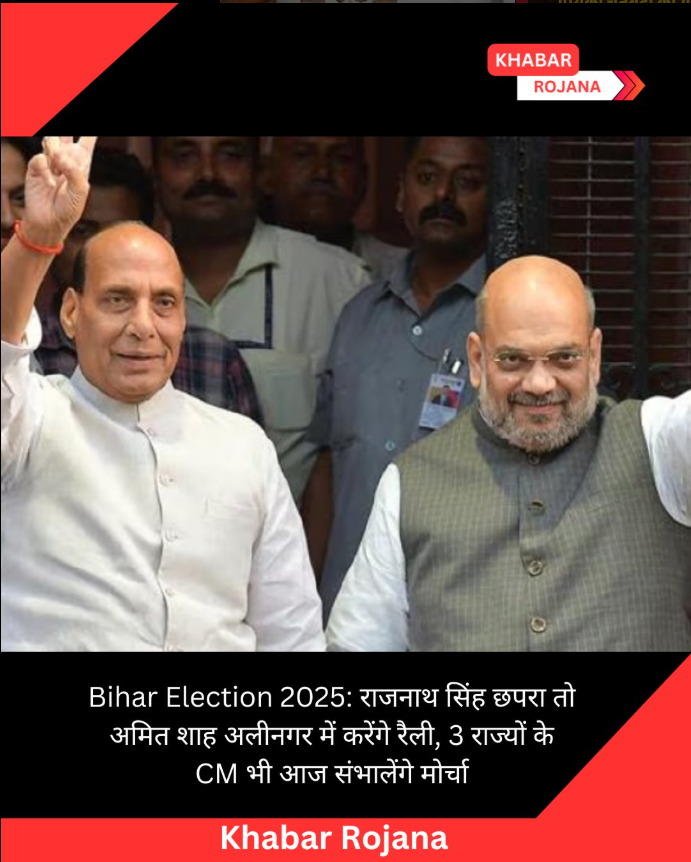बिहार चुनाव 2025 के मद्देनज़र आज बीजेपी के बड़े नेता और केंद्रीय रक्षा मंत्री राजनाथ सिंह छपरा में, जबकि केंद्रीय गृह मंत्री अमित शाह अलीनगर में रैली करेंगे। चुनावी माहौल को और तेज़ करते हुए तीन राज्यों के मुख्यमंत्री भी आज विभिन्न जिलों में जनसभाएं संबोधित करेंगे। पार्टी की कोशिश है कि पूरे बिहार में अपने प्रचार अभियान को नई ऊर्जा दी जाए।