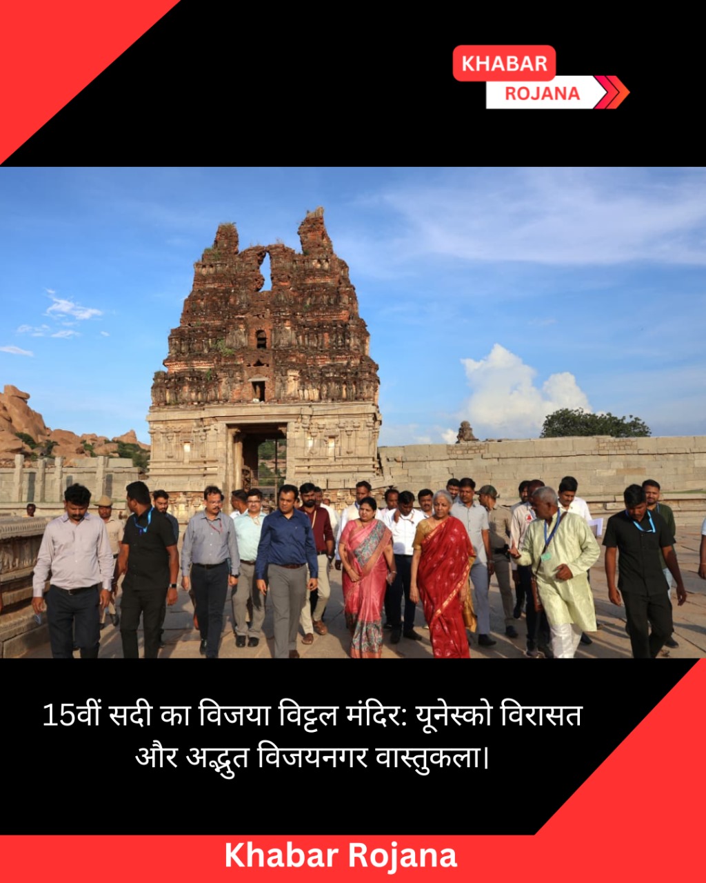 “विजया विट्टल मंदिर हम्पी, कर्नाटक में स्थित एक 15वीं सदी का यूनेस्को विश्व धरोहर स्थल है। यह मंदिर अपनी भव्य और विस्तृत विजयनगर वास्तुकला के लिए प्रसिद्ध है, जिसमें नक्काशीदार पत्थर और जटिल शिल्पकला का अद्भुत संयोजन देखने को मिलता है। मंदिर का प्रत्येक कोना इतिहास और कला का जीवंत प्रमाण प्रस्तुत करता है, जो इसे वास्तुकला प्रेमियों और पर्यटकों के लिए अनमोल धरोहर बनाता है।”