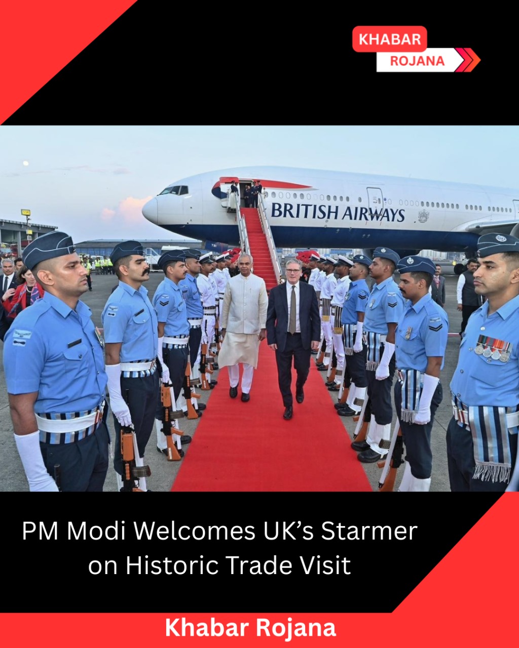 “Prime Minister Narendra Modi warmly welcomes UK Prime Minister Keir Starmer on his historic first visit to India, accompanied by the largest-ever trade delegation from the United Kingdom. The two leaders are set to meet and discuss ways to strengthen bilateral ties, enhance trade relations, and work towards a shared vision of a prosperous, mutually beneficial future for both nations, marking a significant milestone in India-UK relations.”